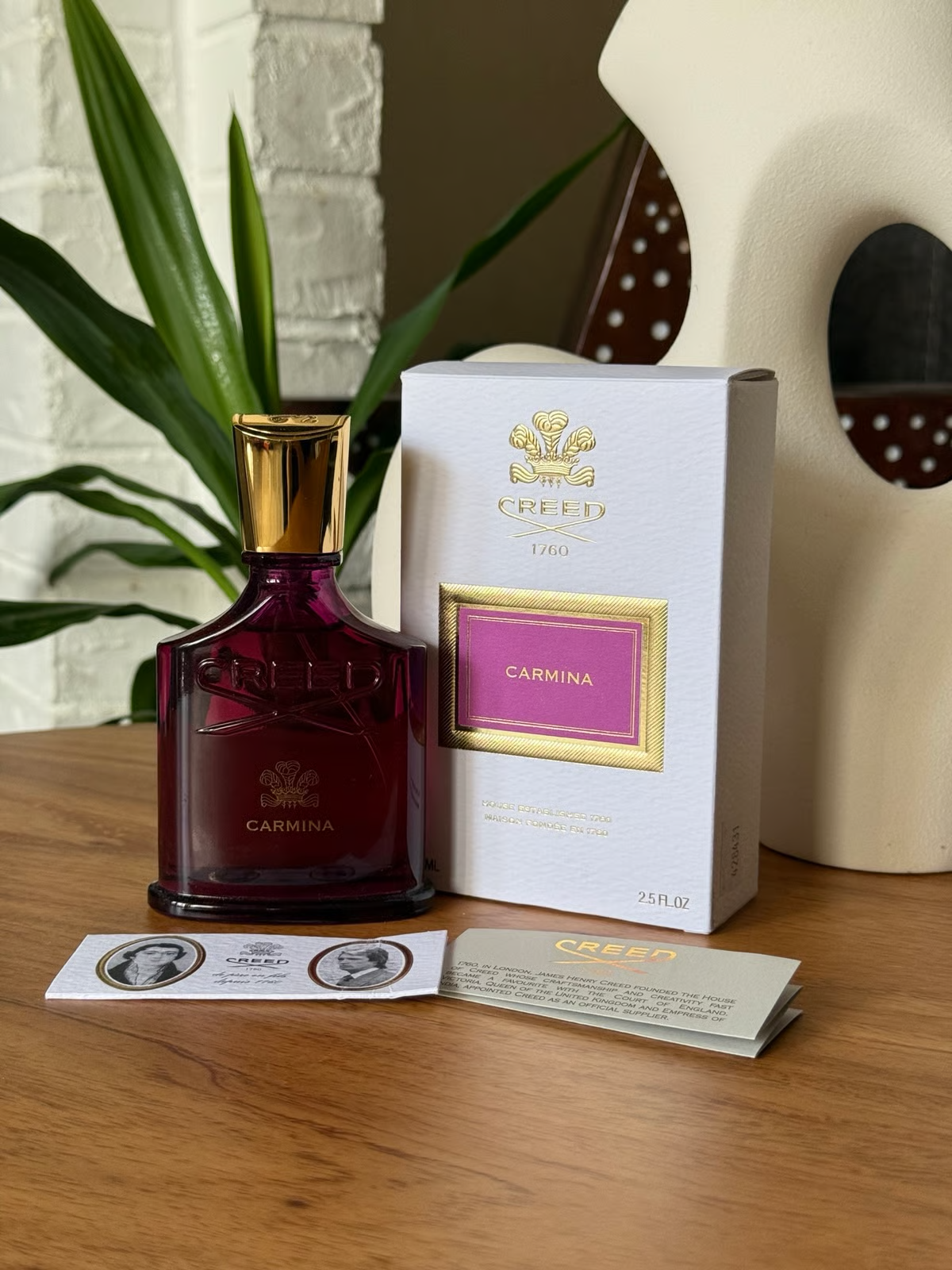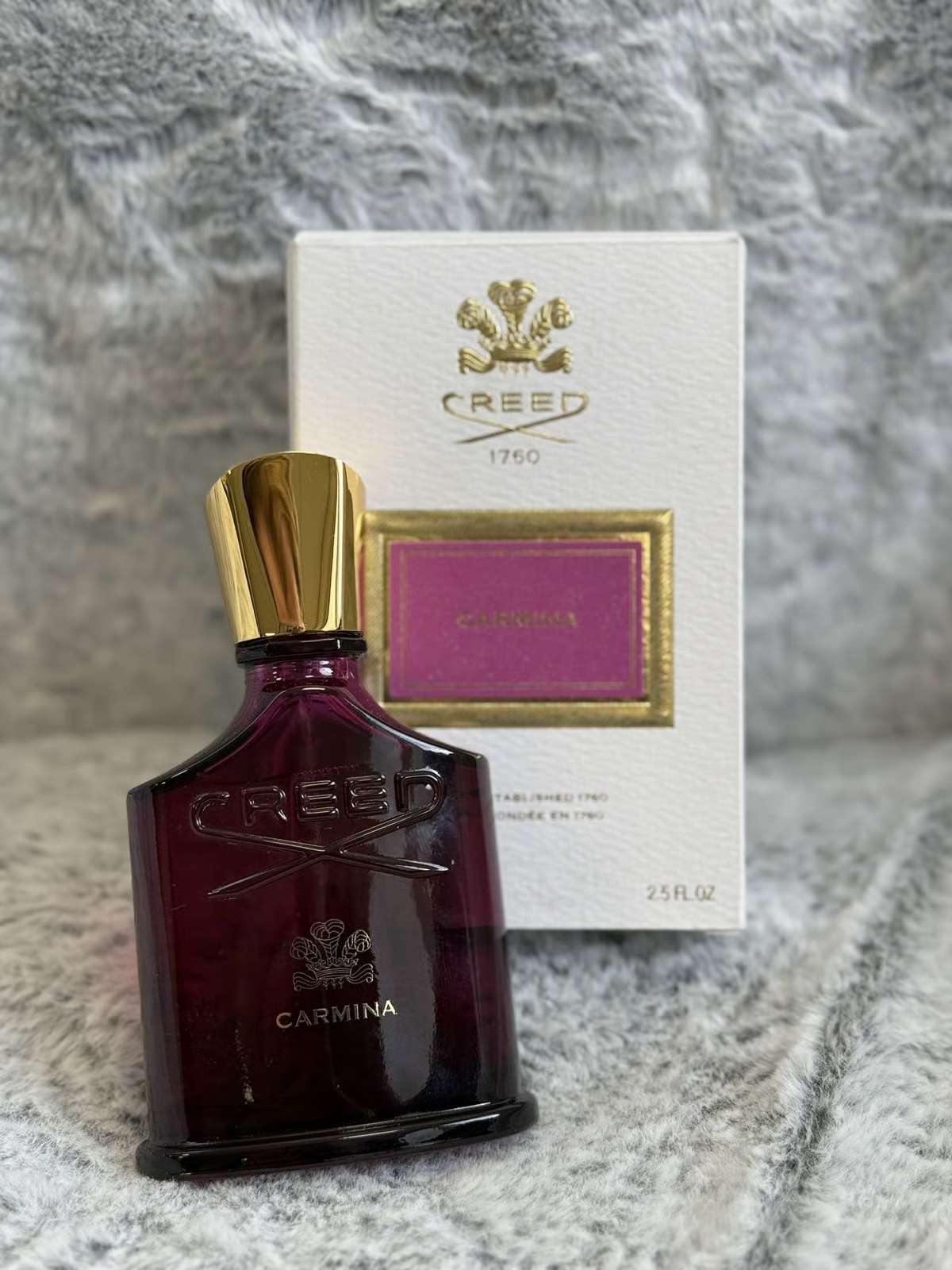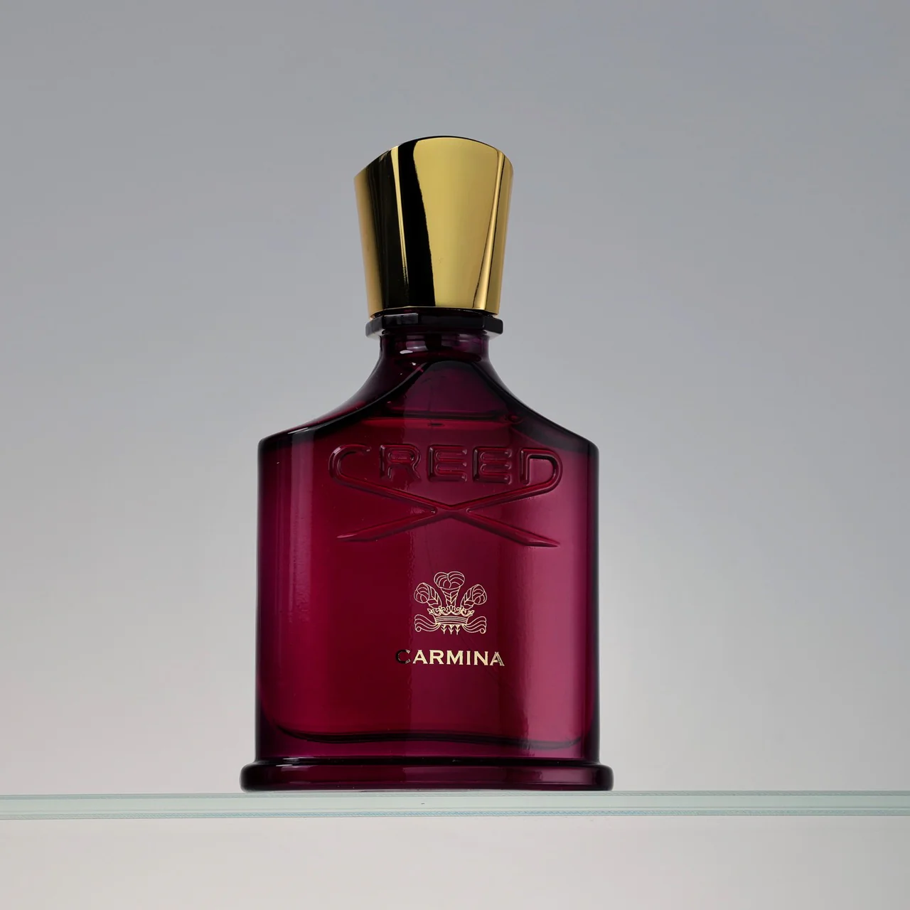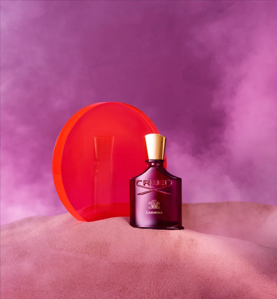 Carmina de Creed es una fragancia de la familia olfativa Almizcle Floral Amaderado para Mujeres. Esta fragrancia es nueva. Carmina se lanzó en 2023. Las Notas de Salida son Cereza negra, azafrán y pimienta rosa; las Notas de Corazón son rosa de mayo, peonía, violeta y madera de cachemira; las Notas de Fondo son almizcle, ambroxan, mirra y Incienso.