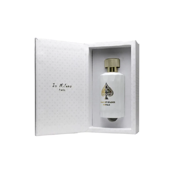 Game of Spades Royale de Jo Milano Paris es una fragancia de la familia olfativa para Hombres y Mujeres. Las Notas de Salida son cacao y avellana; las Notas de Corazón son jazmín sambac (sampaguita) y cedro; las Notas de Fondo son caramelo, ambroxan y musgo.