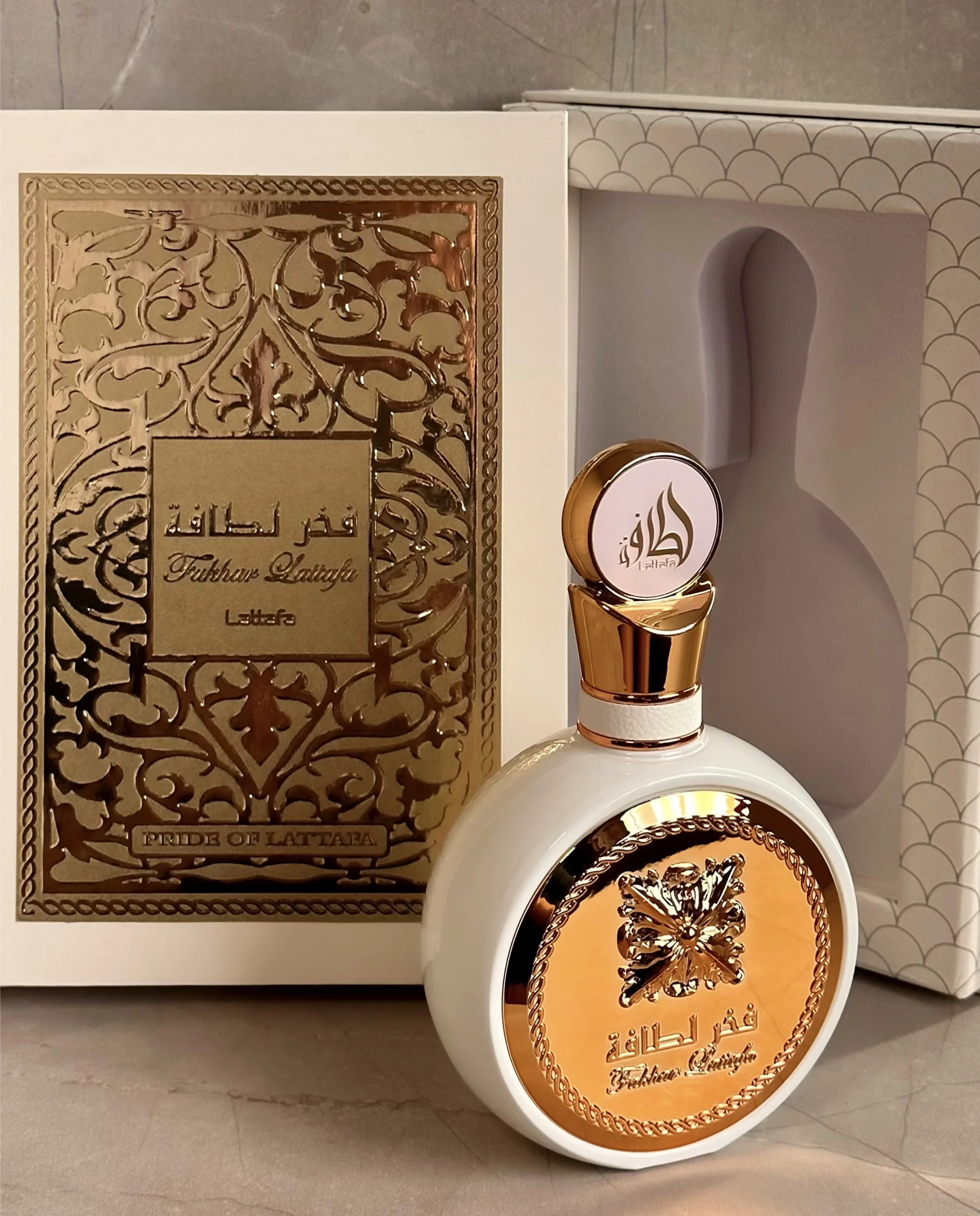 Fakhar Rose de Lattafa Perfumes es una fragancia de la familia olfativa Floral para Mujeres. Esta fragrancia es nueva. Fakhar Rose se lanzó en 2022. Las Notas de Salida son frutas, azucena, granada y aldehídos; las Notas de Corazón son nardos, jazmín, gardenia, ylang-ylang, madreselva, rosa y peonía; las Notas de Fondo son vainilla, almizcle blanco, sándalo y ambroxan.