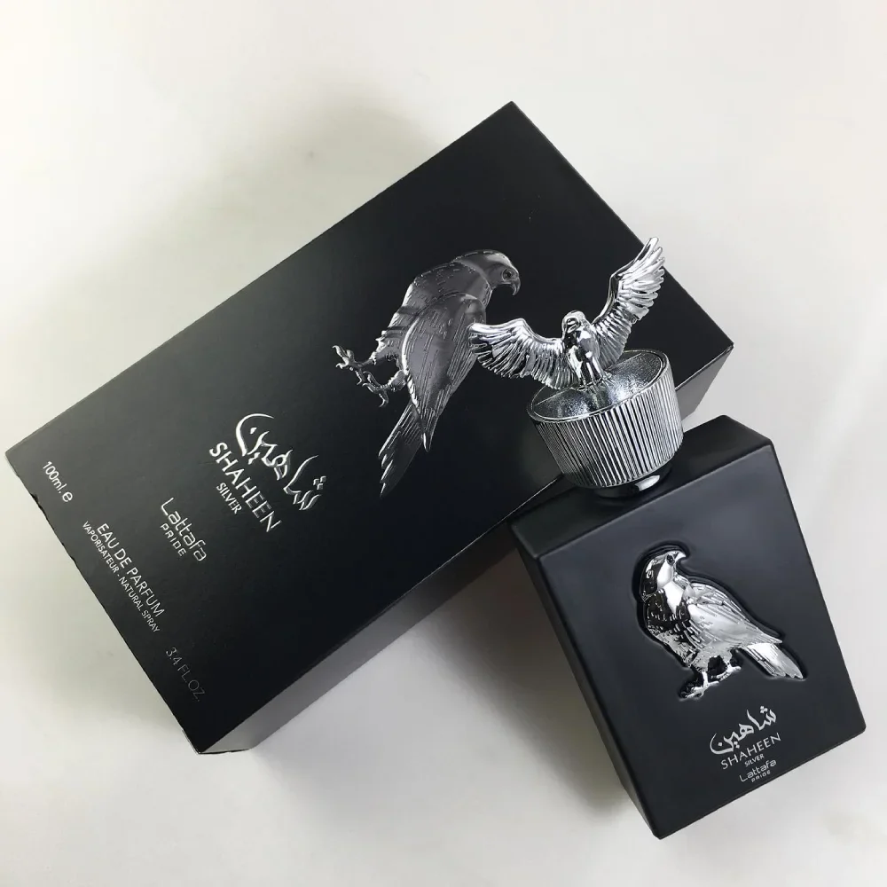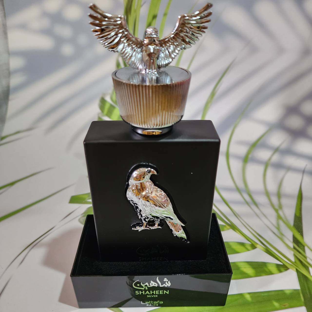 Shaheen Silver de Lattafa Perfumes es una fragancia de la familia olfativa para Hombres y Mujeres. Esta fragrancia es nueva. Shaheen Silver se lanzó en 2022. Las Notas de Salida son bergamota y casis (grosellero negro); las Notas de Corazón son pachulí y rosa; las Notas de Fondo son musgo de roble, almizcle y ámbar.