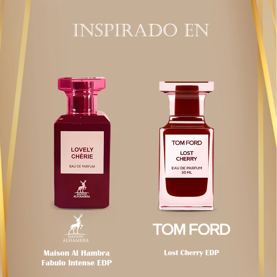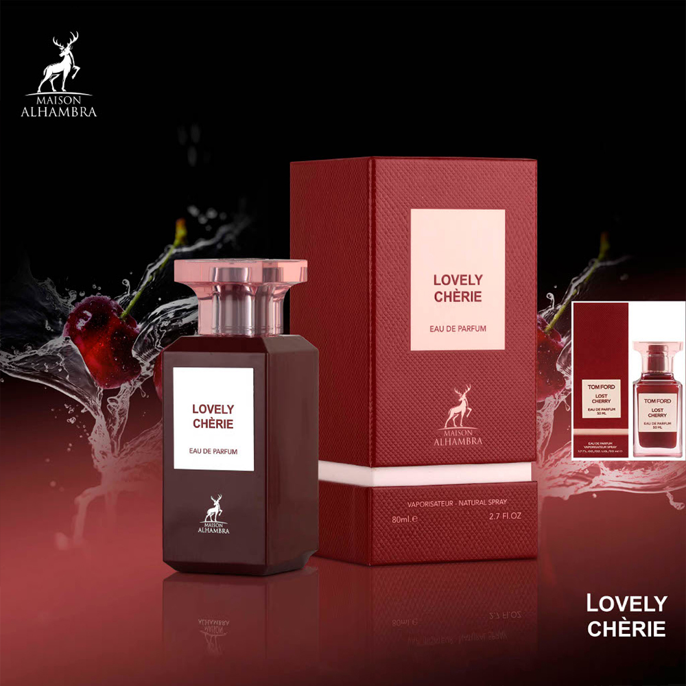 Lovely Chèrie de Maison Alhambra es una fragancia de la familia olfativa para Hombres y Mujeres. Las Notas de Salida son almendra amarga y rosa; las Notas de Corazón son cereza, Cereza negra y ámbar; las Notas de Fondo son haba tonka, tófe y bálsamo del Perú.